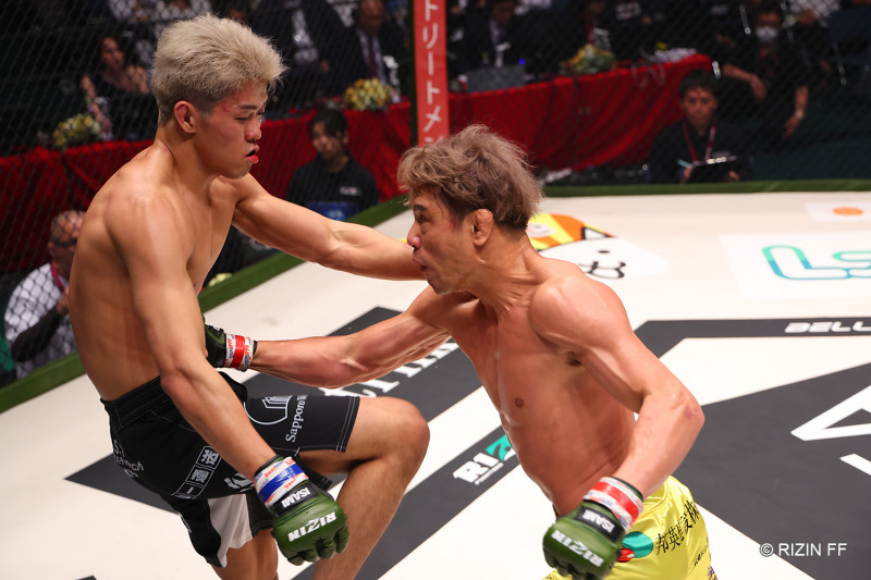 パンチを打ち込む金原