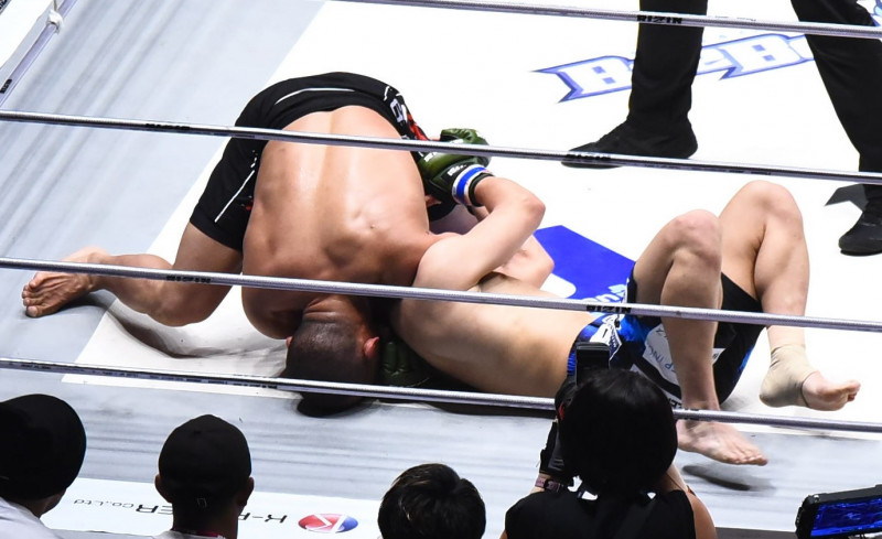 ニンジャチョークを仕掛けるドッドソン