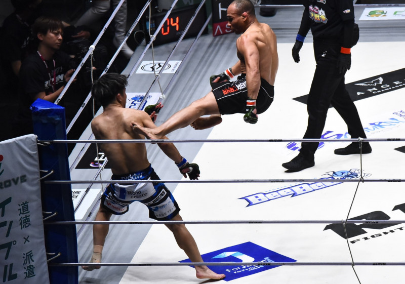 ドッドソンが飛び蹴りを放つ瞬間