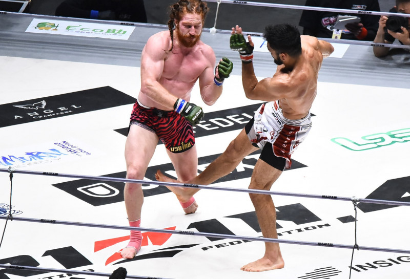 ローキックで攻めるサトシ