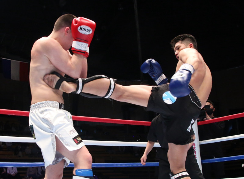 野中がミドルキックを的確に入れる