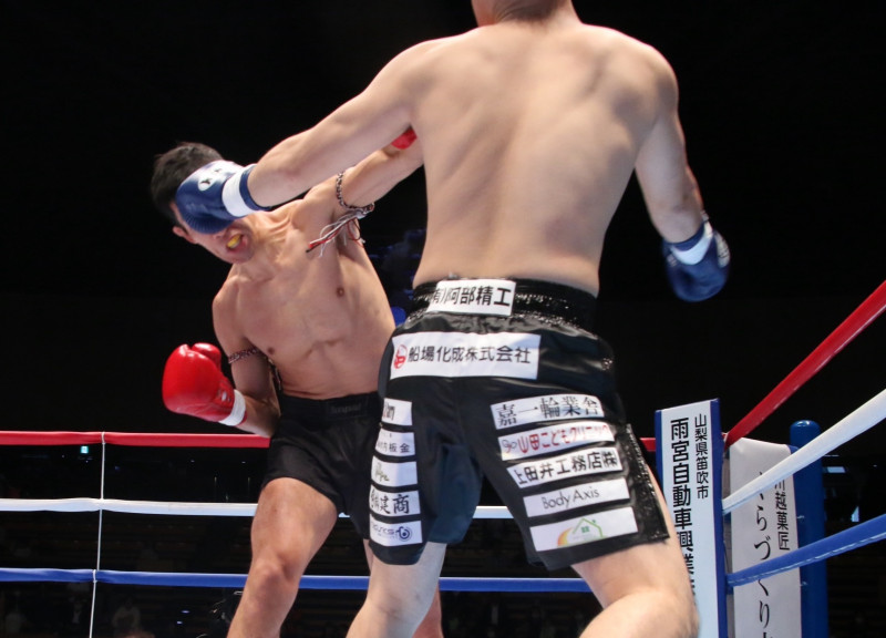 この左でダウンを奪う小原(左)