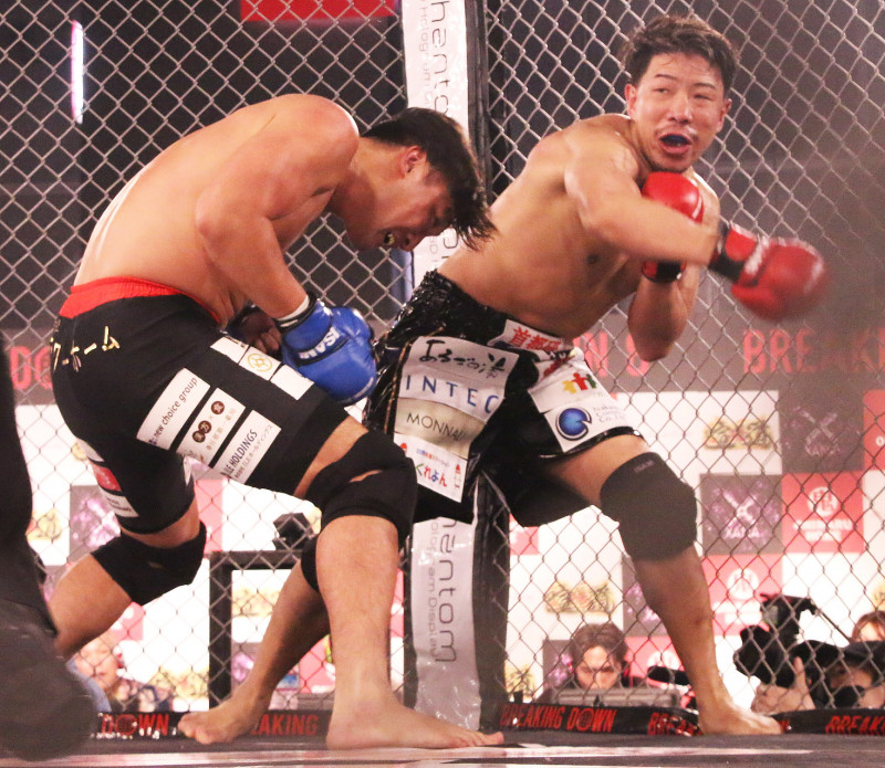 バチバチの殴りあいを演じるほっそん(右)とあきべぇ(左)