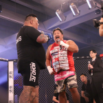 真っ向から打ち合うノッコン(右)とジェフン(左)