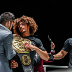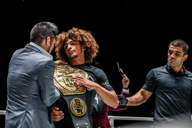 チャトリ代表にベルトを肩に掛けられるルオトロ©️ONE