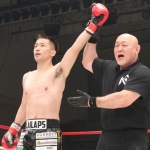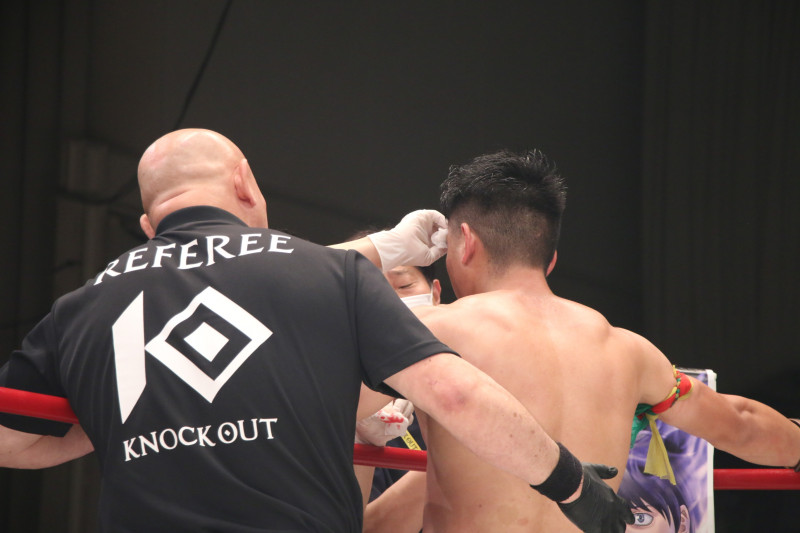 トドメはヒジで流血カット