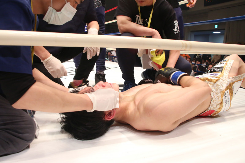 小倉はダウンして立てない様子