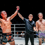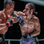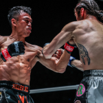 強烈なヒジ攻撃を受けるシッティチャイ