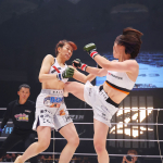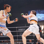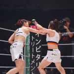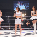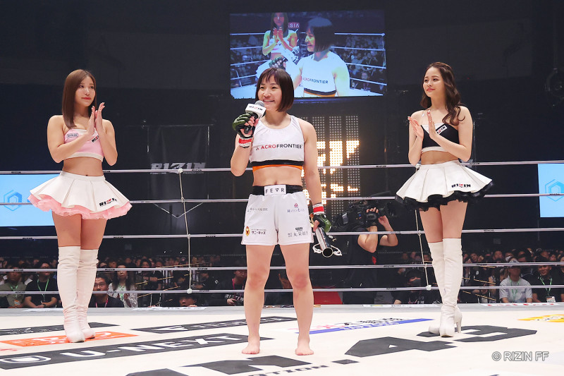 勝利後のマイクで話す大島