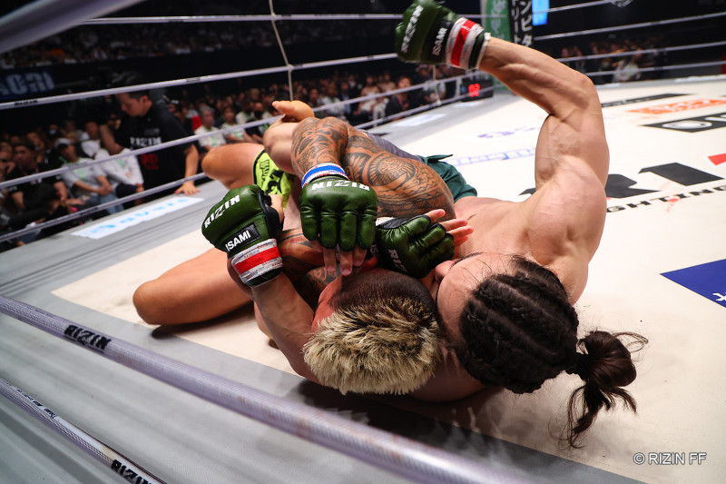 グラウンドでもパンチで攻める矢地