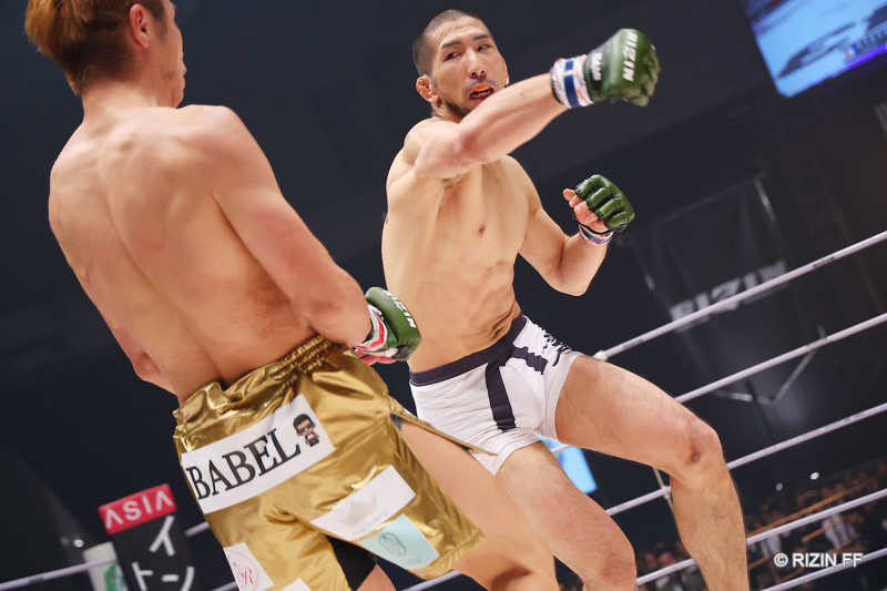 木下がパンチを放つも久保は見切る