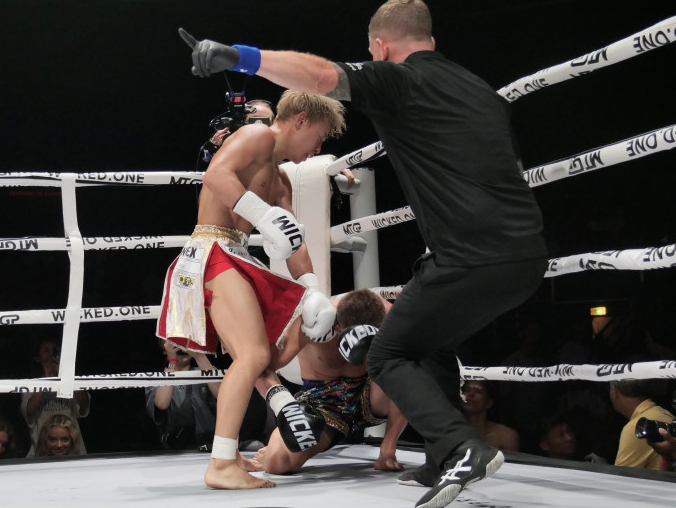 武尊がパンチでダウンを奪う!(C)AbemaTV,Inc.