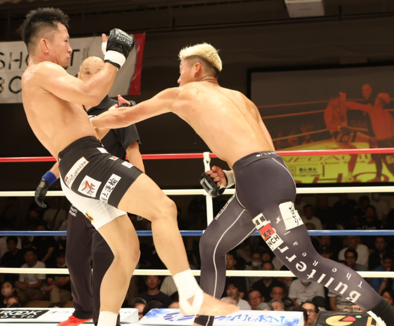 的確なヒットで伊藤を下がらせる基山