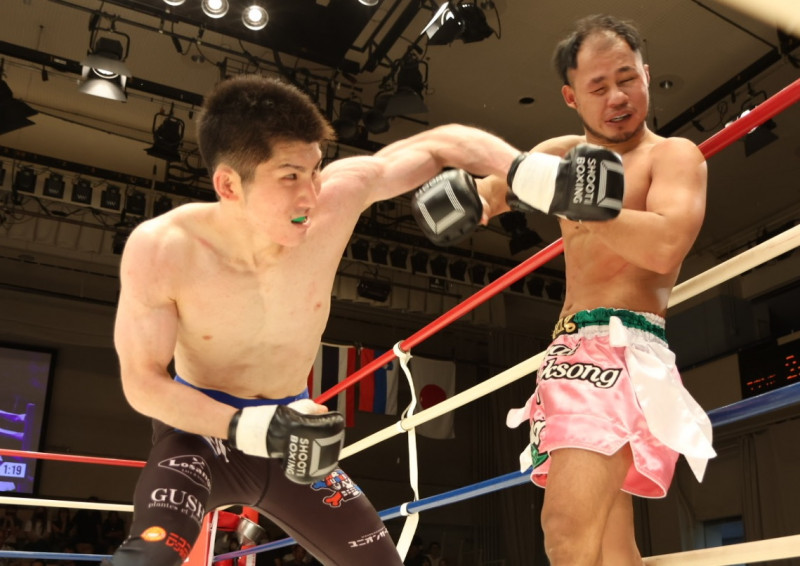 強烈なパンチを繰り出す佐藤