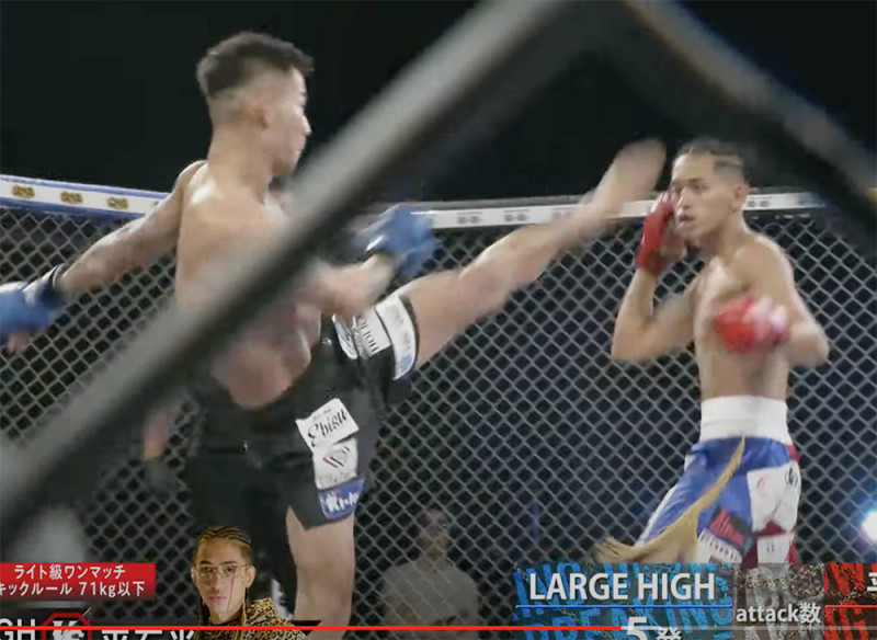 LARGE HIGHがハイキックを放つ(朝倉未来のYouTubeより)