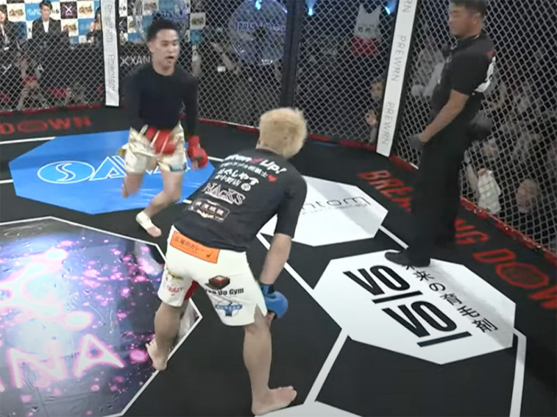 こめおが勢いをつける(朝倉未来のYouTubeより)