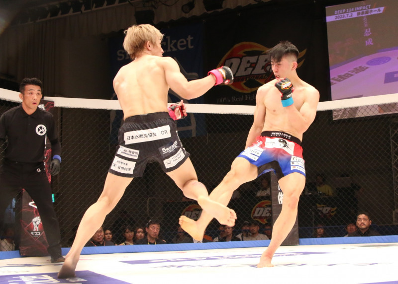 カーフキックで攻める海飛