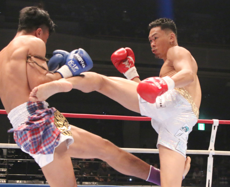 左ミドルを当てる鈴木