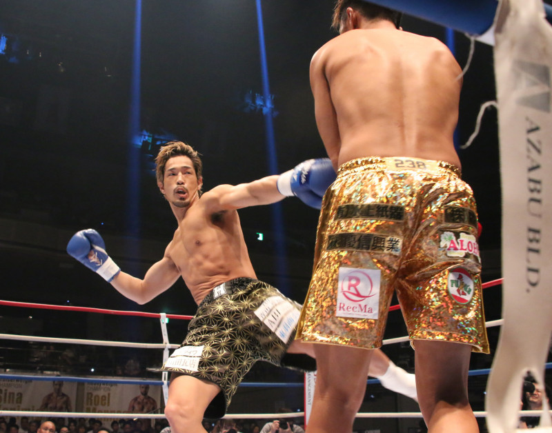 ローキックで攻める東本