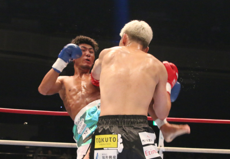 この左でダウンを奪った篠原(右)