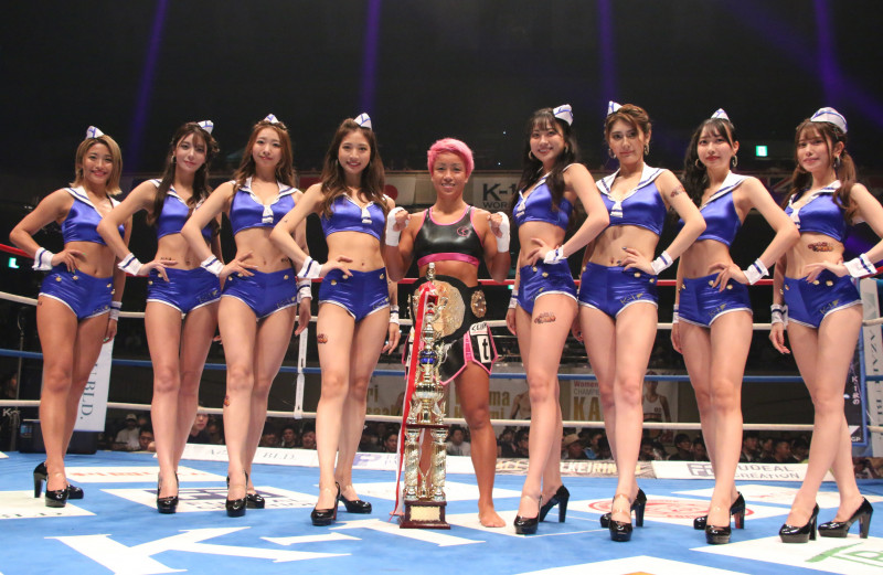 KANAがKO防衛、ラウンドガールと並ぶ