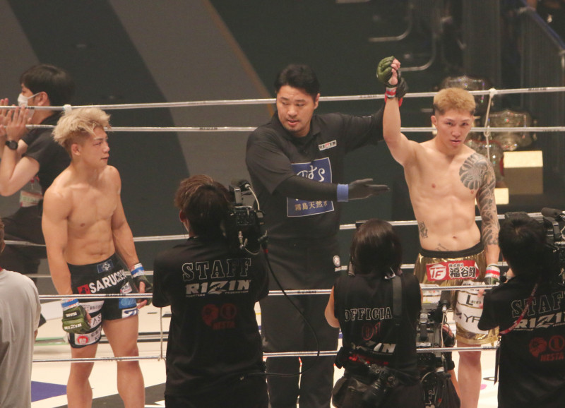 伊藤裕樹(右)がヒロヤ(左)に判定勝利