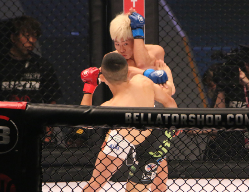 キックを放つ堀口(下)