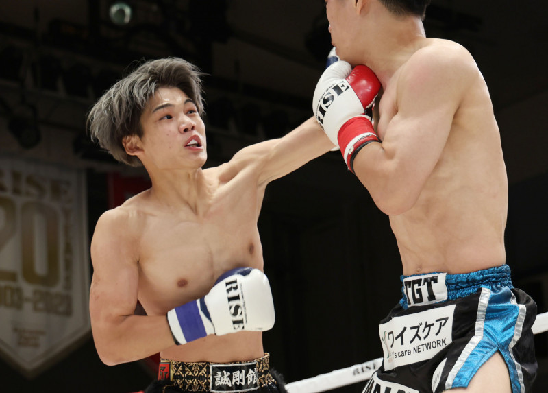 長谷川海翔(左)のカウンターパンチが炸裂、無敗記録を更新