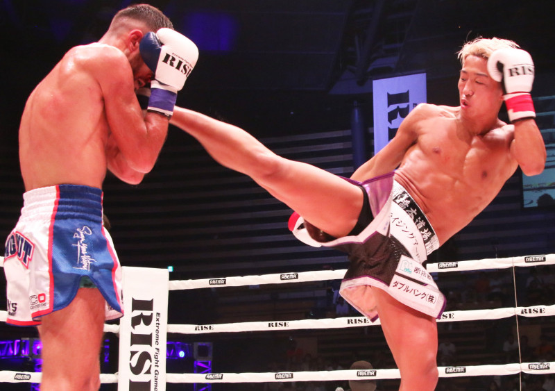 右ハイを放つ花岡