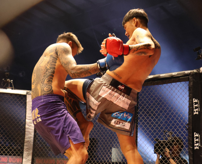 このヒザ蹴りでダウンを奪うシモミシュラン