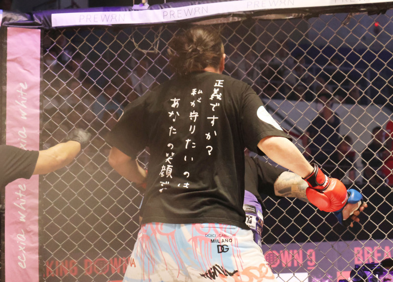 後半にごぼう奥野のパンチが連続で当たるとタイソンは背を向ける