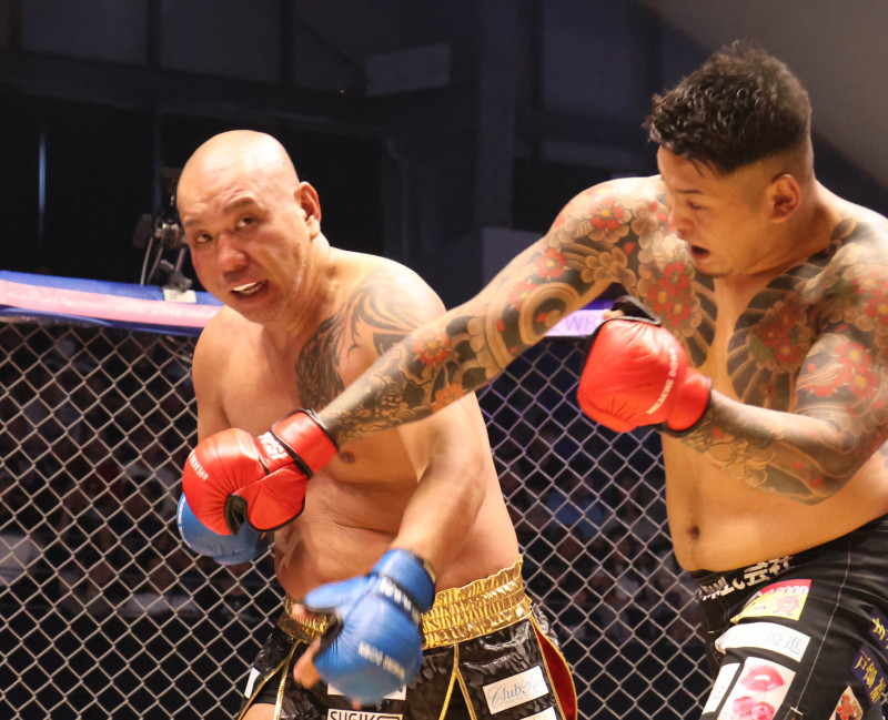 サップ西成(左)と松井健(右)がパンチ合戦!