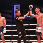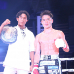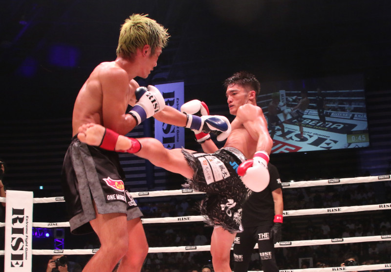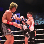 大﨑はパンチとヒザ、ミドルを入れて打ち合いを優勢に進めた