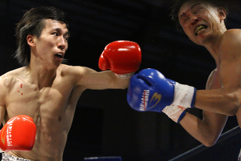 元太郎のパンチがヒット、矢島は出血