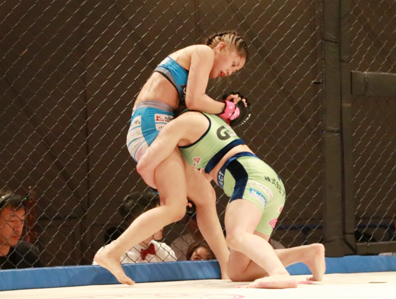 山崎をケージに押し込む古林