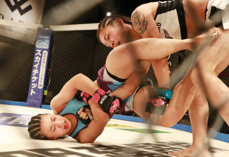 次々とケイト(右)に関節技を仕掛けた須田(左)