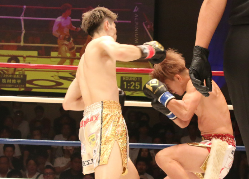 栗秋(左)のフックが炸裂!