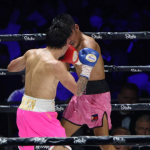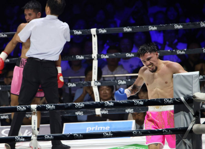 オラスクアガ(右)が7回TKO勝ちを飾った