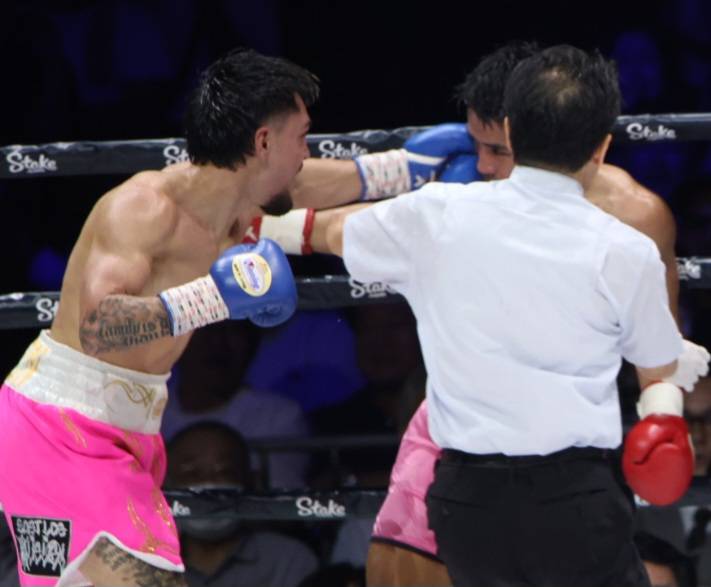 オラスクアガが強烈な左を打ち込み、レフェリーが止めた