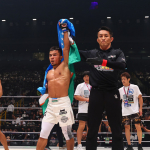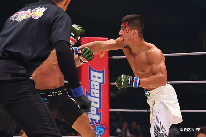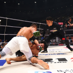 テミロフの強打がヒット、征矢が吹っ飛ぶ