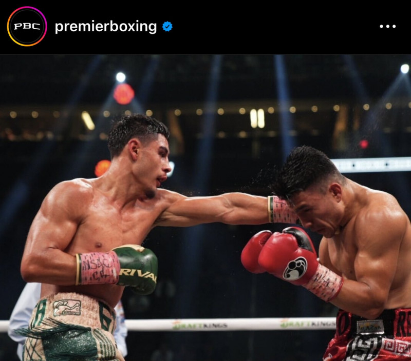 20歳のガルシアが強烈なパンチを当てる(@premierboxingより)