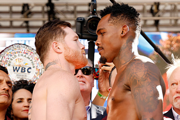 前日計量でカネロ(左)とチャーロ(右)のフェイスオフ(Getty)