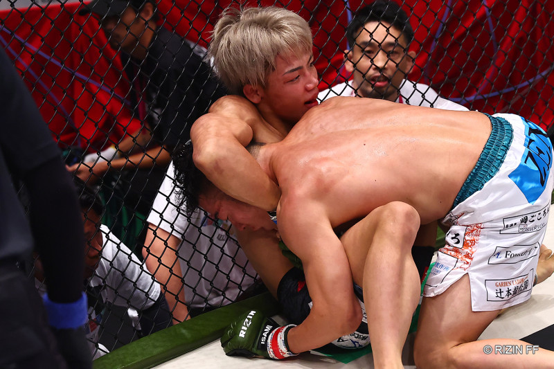 ギロチンチョークを仕掛けるヒロヤ