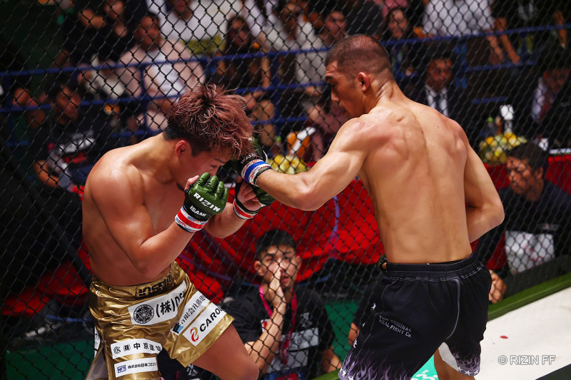 パンチを打ち込む佐藤