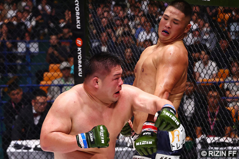貴賢神(右)は荒東(左)にKO負けでRIZIN初勝利ならず