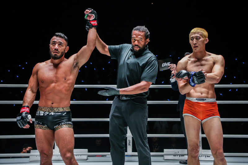 手塚が1年8ヶ月ぶりの復帰戦で一本勝ちを飾った©️ONE