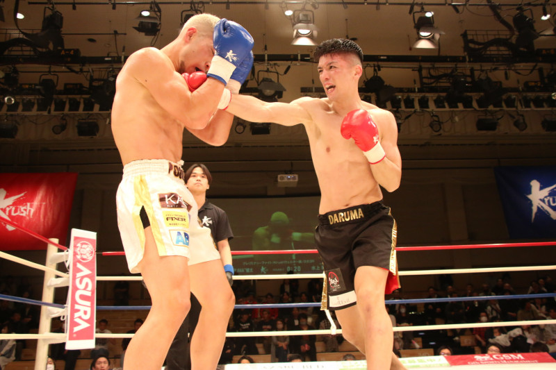 田上がパンチを当てる!
