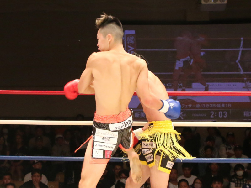 新美(奥)の左フックがヒット