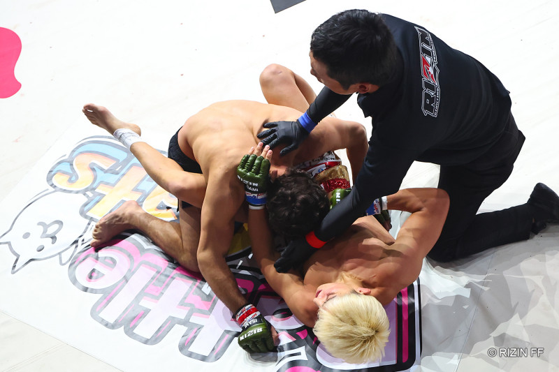 失神したケラモフ、レフェリーがストップ©️RIZIN