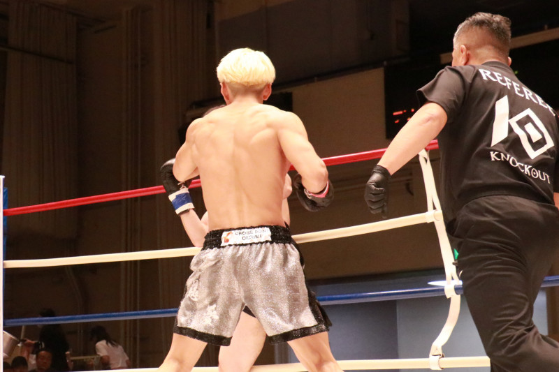 羽黒が旭野をロープ際に追い詰める